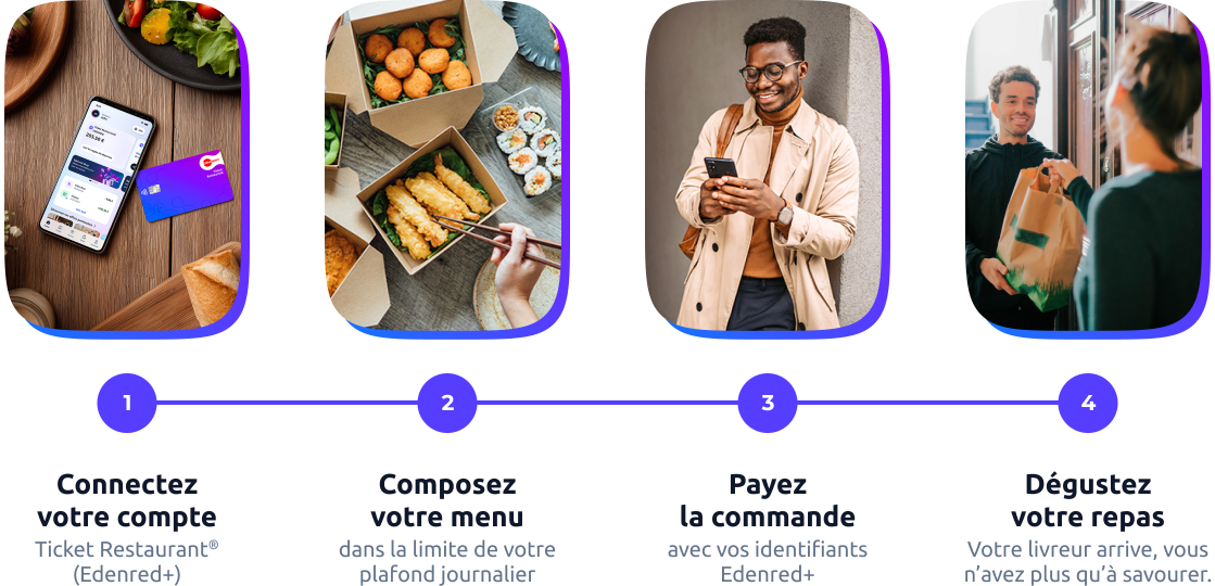 Vos plateformes de livraison préférées sont disponibles avec votre carte Ticket Restaurant : Uber Eats, Deliveroo, Rapidle...